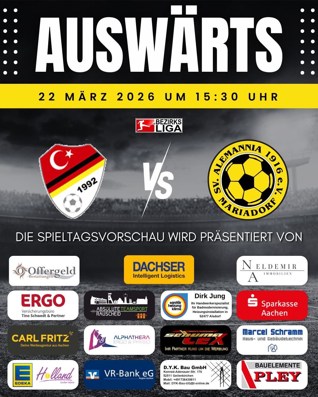 Wir freuen uns auch auswärts auf eure Unterstützung! 💛🖤