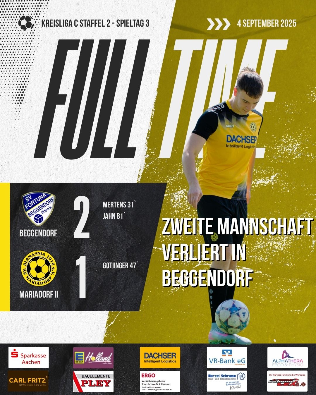 Zweite Mannschaft verliert in Beggendorf mit 2:1