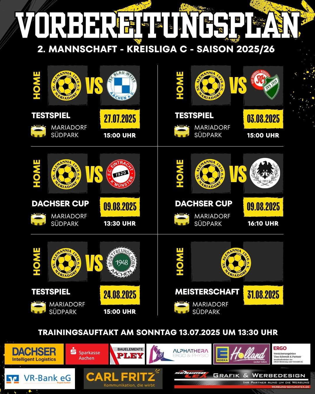 Vorbereitungsplan Saison 2025/26 – Alemannia Mariadorf 1. Mannschaft