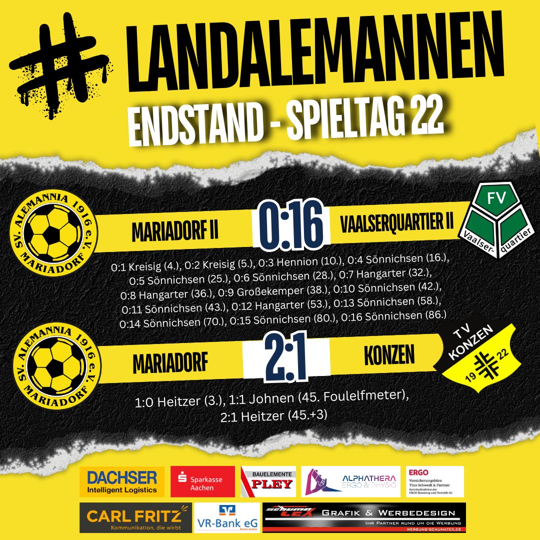 Erste Mannschaft siegt gegen Konzen, Zweite verliert deutlich mit 0:16