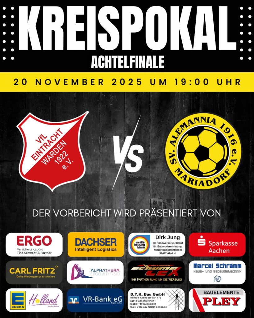 Lokalderby im Achtelfinale des Aachener Kreispokals!