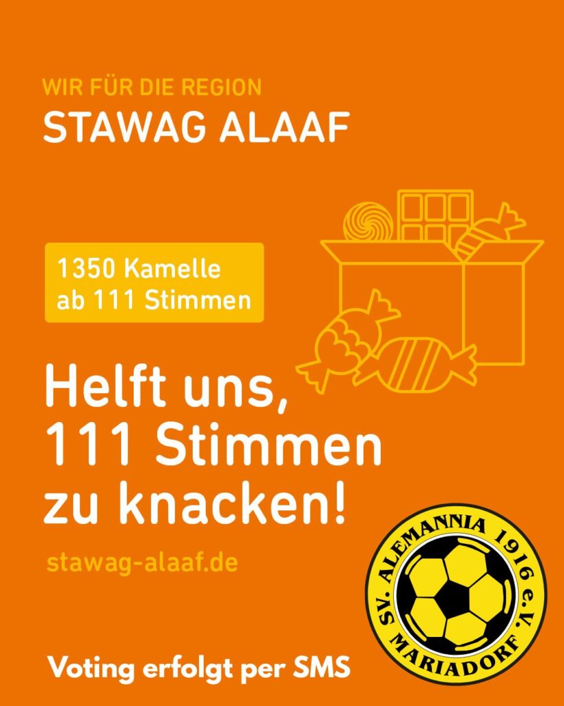 Helft uns 111 Stimmen zu knacken bei der Aktion „STAWAG Alaaf!“