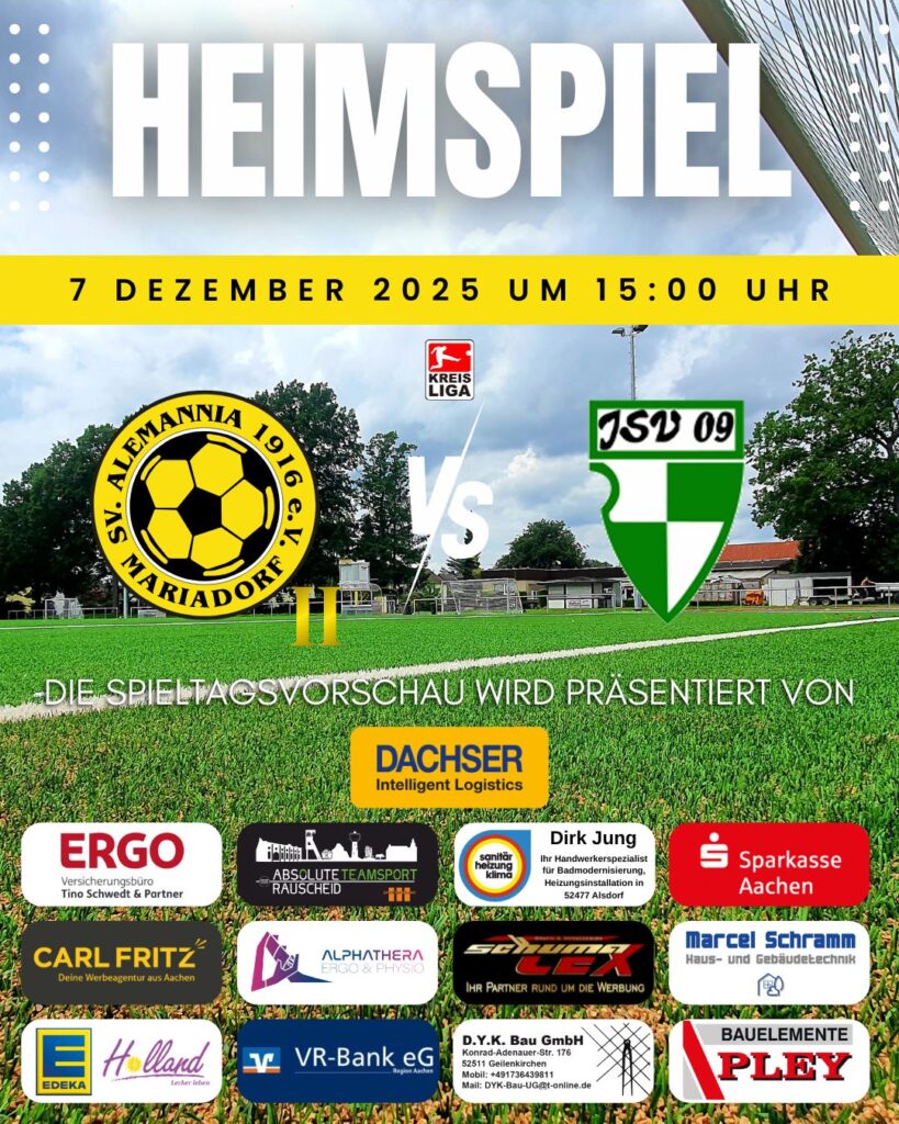 Unsere zweite Mannschaft empfängt am Sonntag den JSV Baesweiler. Der Gegner steht auf Platz neun und hat zehn Punkte weniger als unser Team. Baesweiler verlor zuletzt das Derby gegen Concordia […]