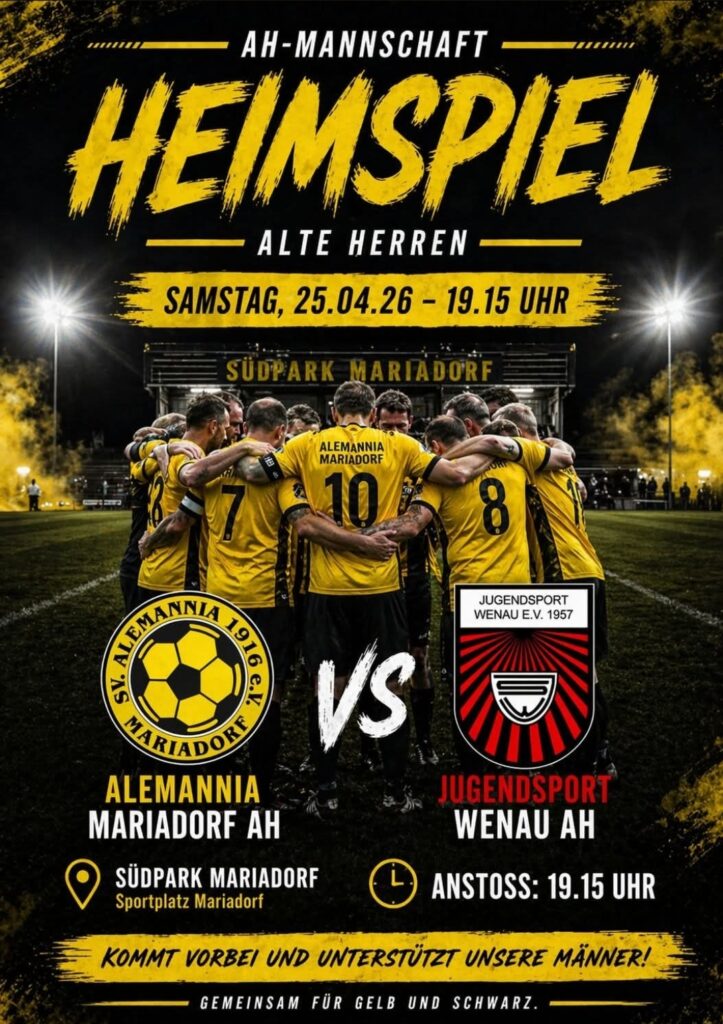 Am kommenden Samstag steht im Südpark das Duell gegen die Alt Herren von Jugendsport Wenau an. Anstoß ist um 19.15 Uhr. Gespielt wird auf unserem Platz in Mariadorf. Kommt vorbei […]