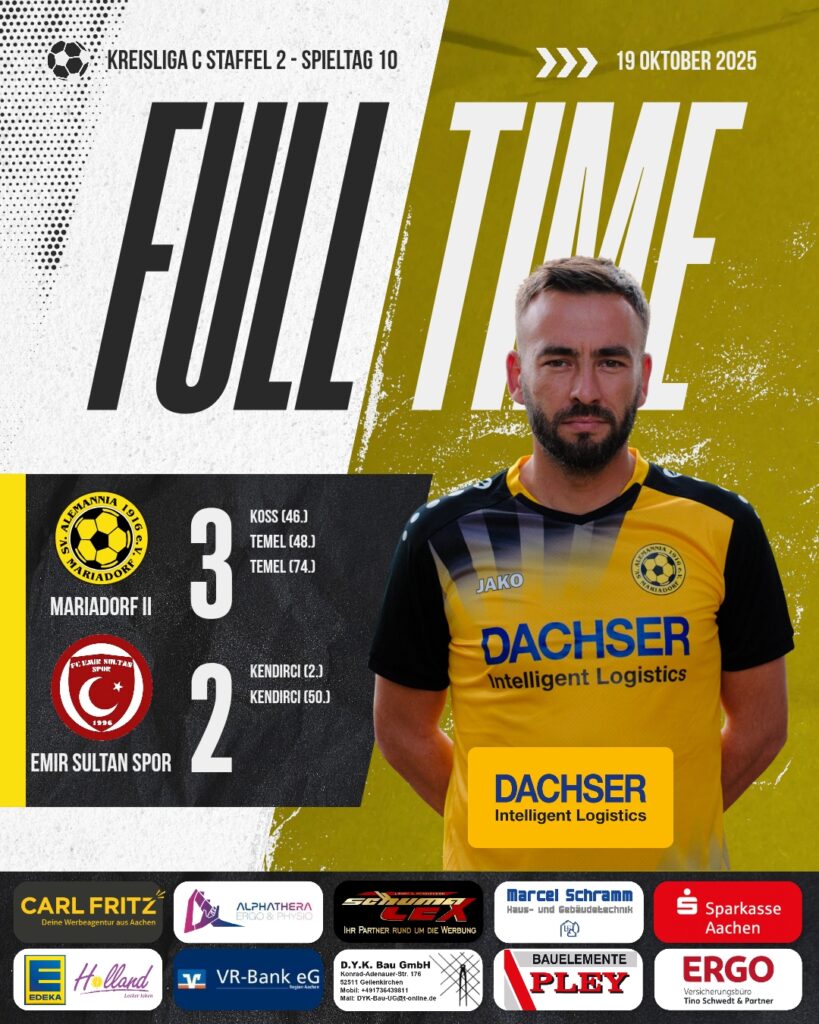 Unsere zweite Mannschaft gewann ihr Heimspiel gegen Emir Sultan Spor mit 3:2 und springt damit auf Rang 5 der Tabelle. Das Team von Trainer Firat Arik zeigte nach einem frühen […]