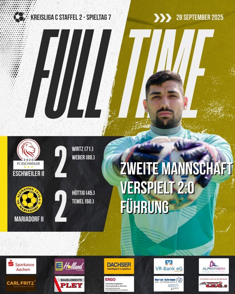 Unsere Zweite hat beim Tabellenführer FC Eschweiler II einen starken Auftritt hingelegt und ein 2:2-Unentschieden erkämpft. Damit belohnten wir uns für eine engagierte Leistung, auch wenn am Ende sogar mehr […]