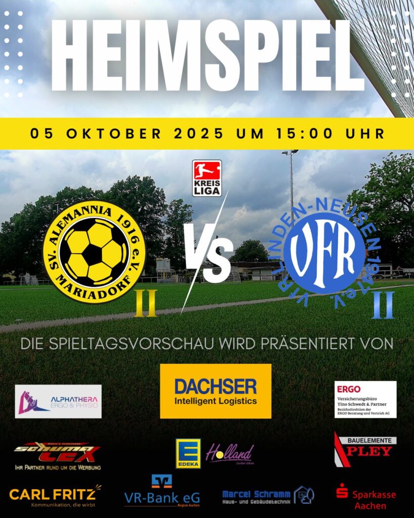 Im Oktober warten gleich vier spannende Spiele unserer Seniorenmannschaften auf euch! Kommt vorbei, unterstützt unsere Jungs und sorgt für Stimmung auf dem Platz. • Sonntag, 05.10.2025, 15:00 Uhr Alemannia Mariadorf […]