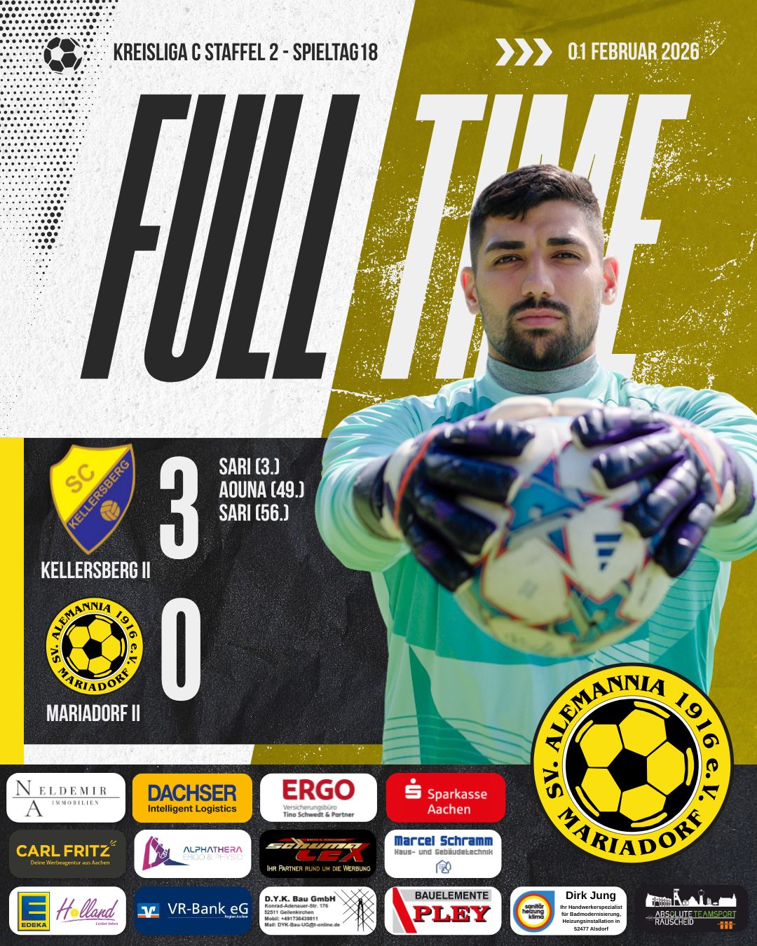 Unsere Mannschaft gab sich bis zum Schluss nicht auf. In der Nachspielzeit wurde nach einem Handspiel auf Elfmeter entschieden. Pascal Willems verwandelte sicher zum 3:4 Endstand.