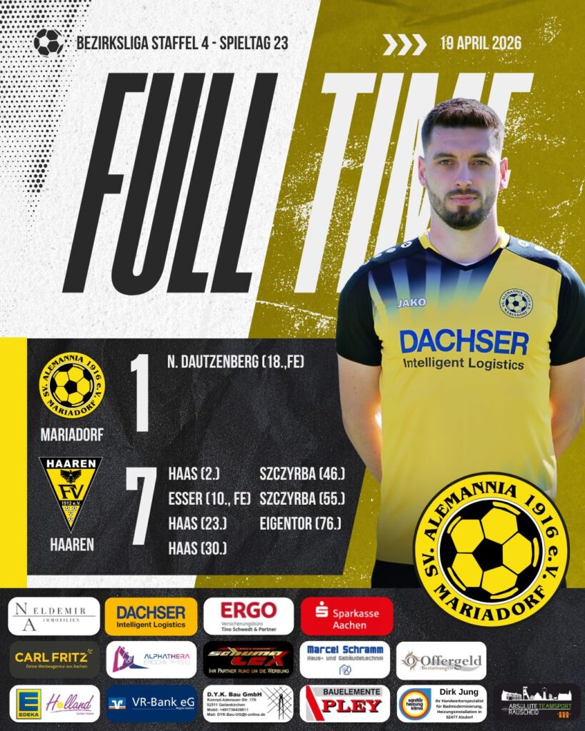 Zwar gelang zwischenzeitlich der Anschlusstreffer zum 1:2 ebenfalls per Foulelfmeter (Torschütze: Nico Dautzenberg), doch die Gäste blieben effektiv und bestraften die defensiven Unstimmigkeiten unserer Mannschaft eiskalt. Noch vor der Pause war die Partie bereits deutlich in Richtung der Gäste gekippt.