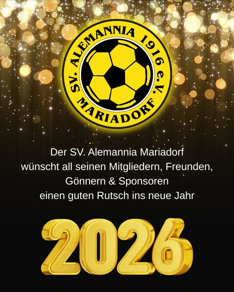 Der SV Alemannia Mariadorf wünscht all seinen Mitgliedern, Freunden, Gönnern und Sponsoren einen guten Rutsch ins neue Jahr! Kommt gut rein und feiert schön!