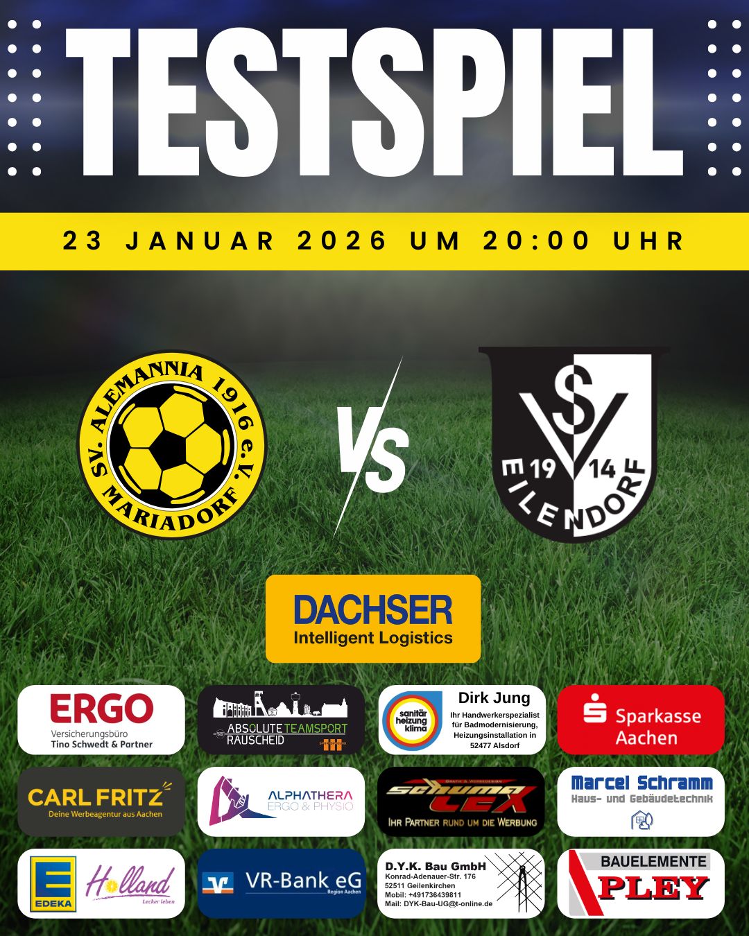 Für unsere Erste Mannschaft steht am Sonntag ein herausforderndes Spiel gegen Rhenania Richterich bevor. Obwohl Richterich mit ihren jüngsten Erfolgen und einer stabilen Position im Tabellenmittelfeld favorisiert ist, hat unser Team in den letzten vier Spielen mit sieben Punkten gezeigt, dass wir uns nicht kampflos geschlagen geben. Unser Fokus liegt darauf, die Abwehr zu stärken, da wir durchschnittlich mehr als zwei Gegentore pro Spiel kassieren, doch wir glauben an unsere Chancen, Punkte einzufahren.