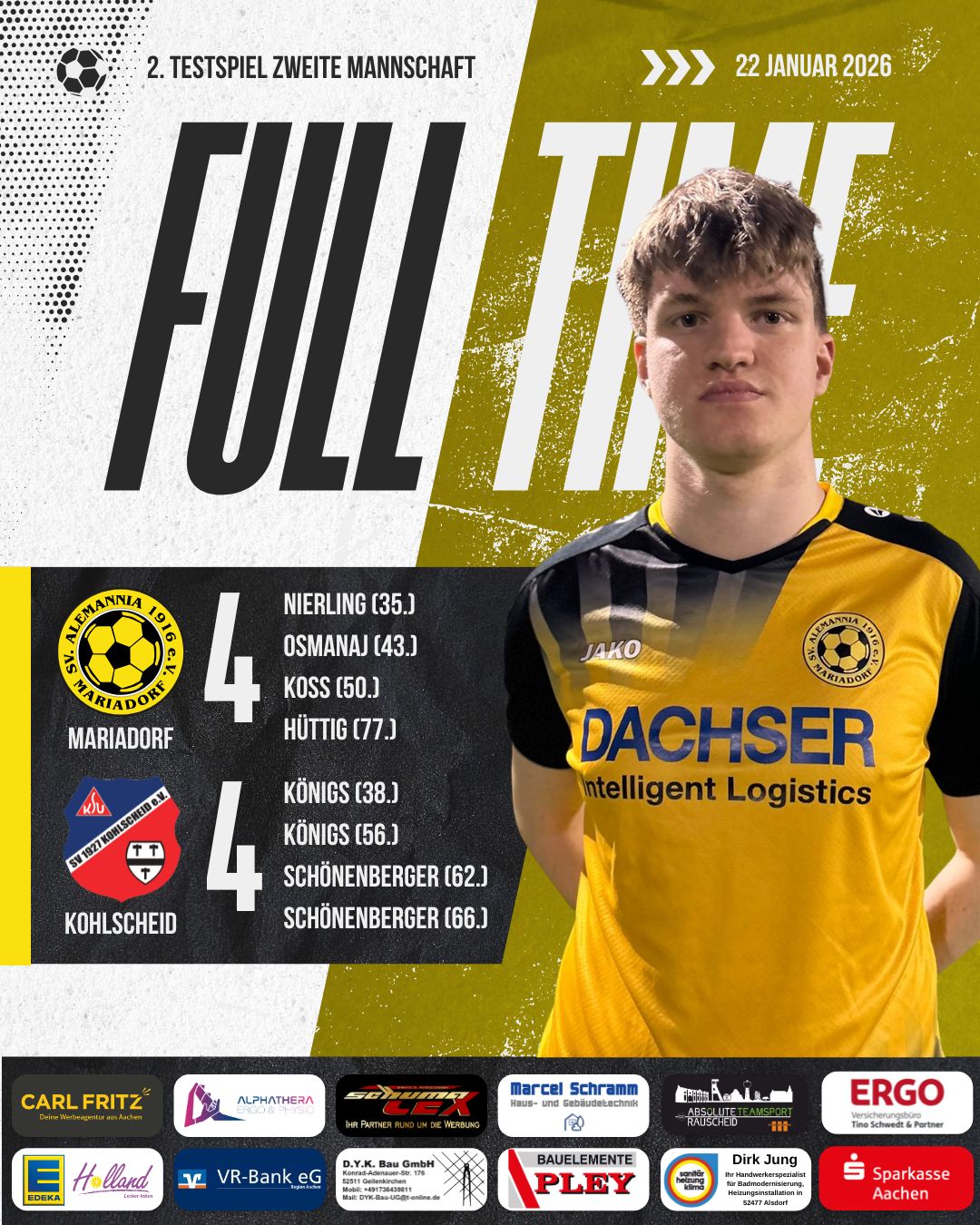 Das Hinspiel endete bereits ausgeglichen 1:1, und wir sind bereit, erneut alles zu geben, um vor heimischer Kulisse zu bestehen. Mit einer engagierten Leistung und dem Vertrauen in unser Potenzial könnte eine Überraschung gelingen. Die Unterstützung unserer Fans wird uns den nötigen Antrieb geben, in diesem wichtigen Duell erfolgreich zu sein. 💪⚽
