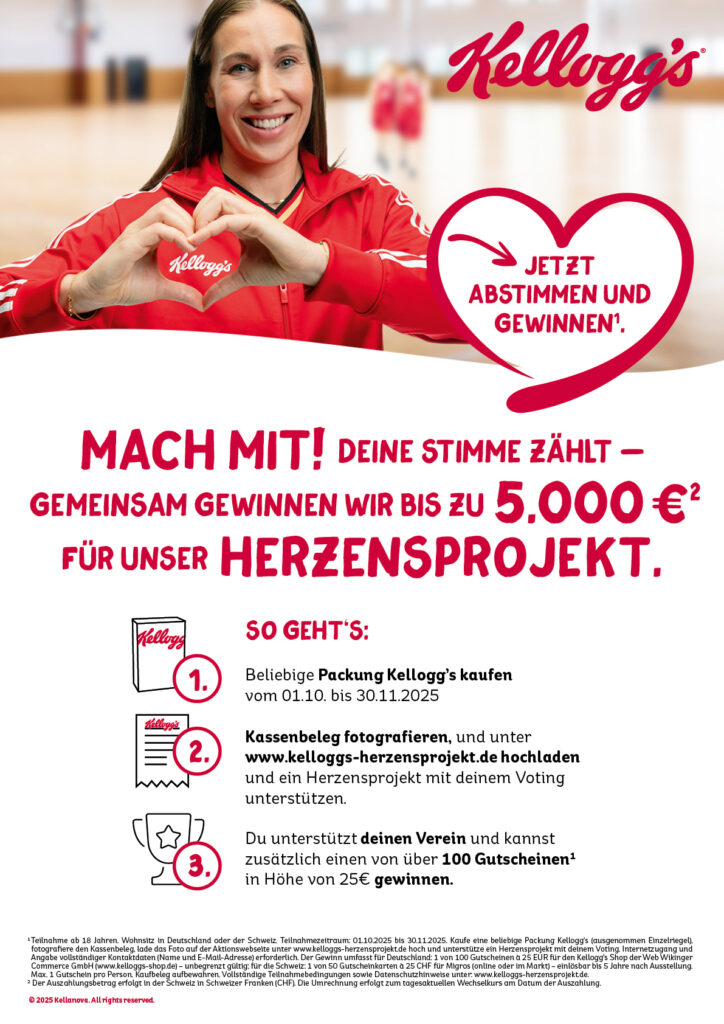 Wir nehmen an der Aktion „Kellogg’s Herzensprojekte“ teil. Mit deiner Stimme können wir bis zu 5.000 € gewinnen und unser Herzensprojekt verwirklichen.