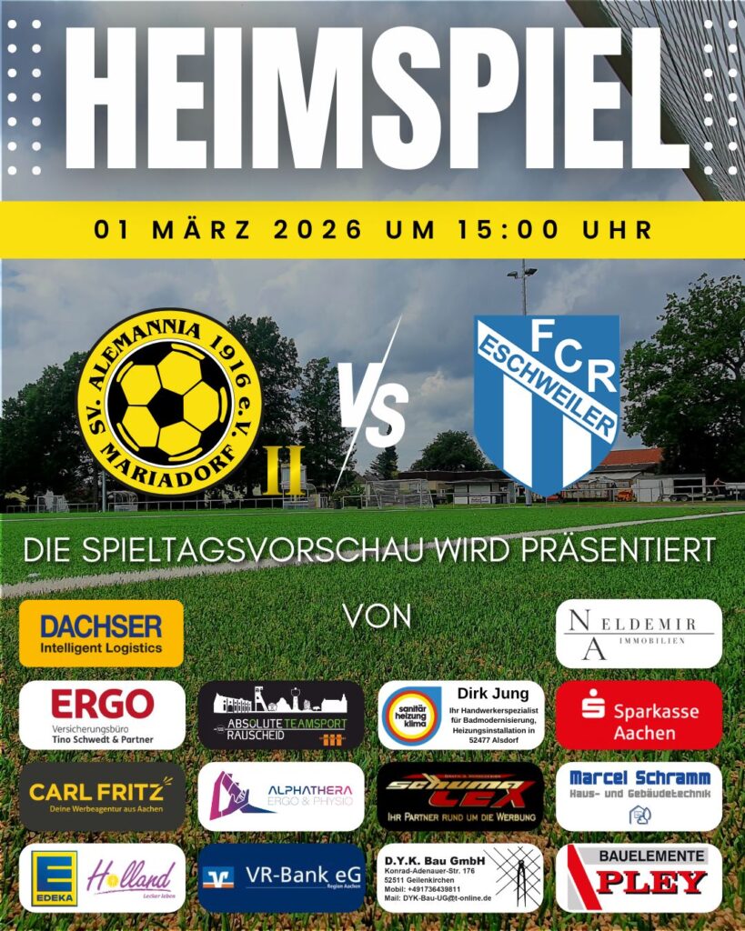 Unsere zweite Mannschaft stellt aktuell eine der torgefährlichsten Offensiven der Liga und erzielt im Schnitt mehr als zwei Treffer pro Spiel, was auch im Hinspiel den Unterschied machte, als wir in Eschweiler einen knappen 1:0-Erfolg feiern konnten. Die Mannschaft tritt derzeit geschlossen auf, nutzt ihre Chancen konsequent und zeigt sich vor dem Tor deutlich effizienter als noch in der Phase zuvor.